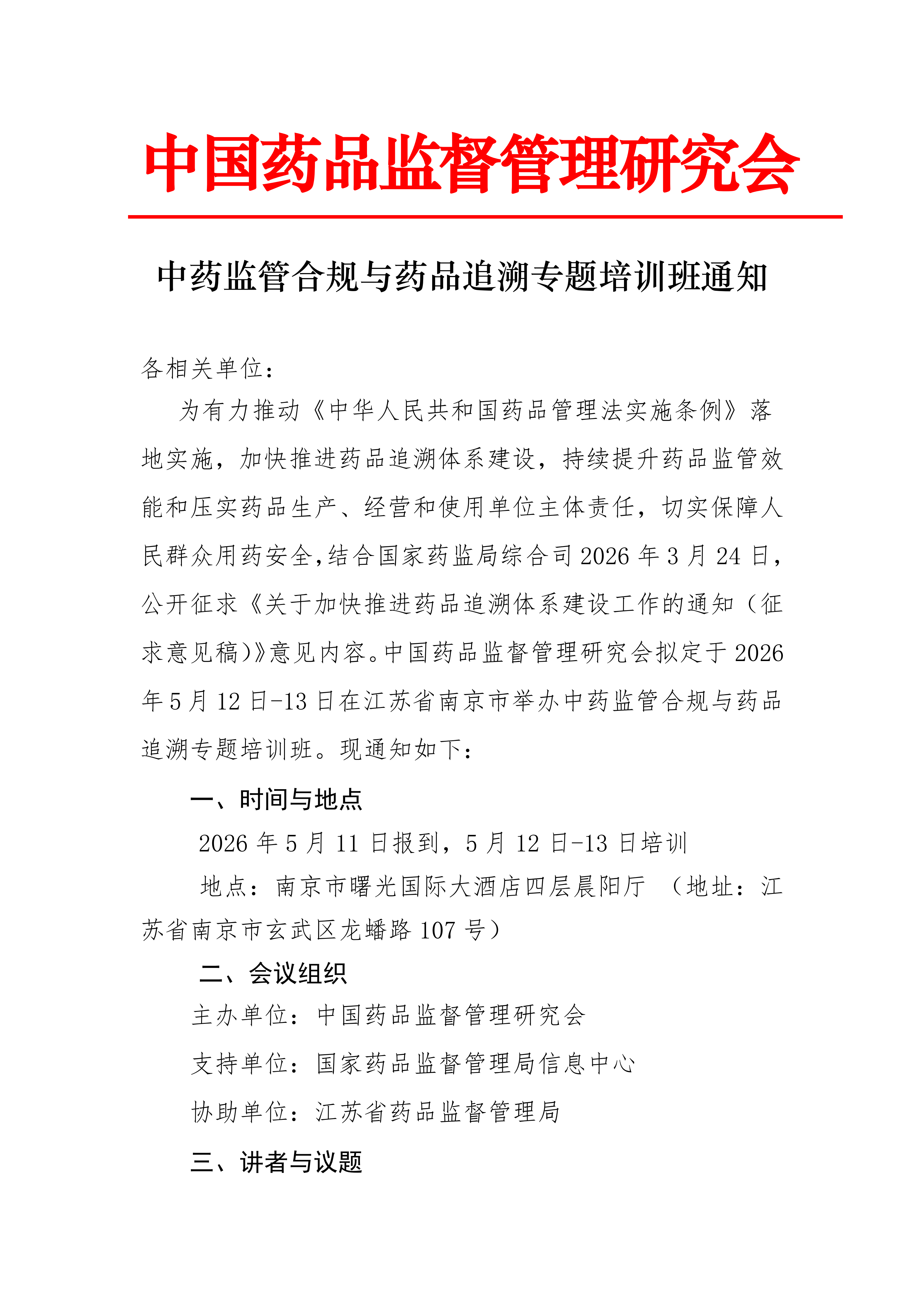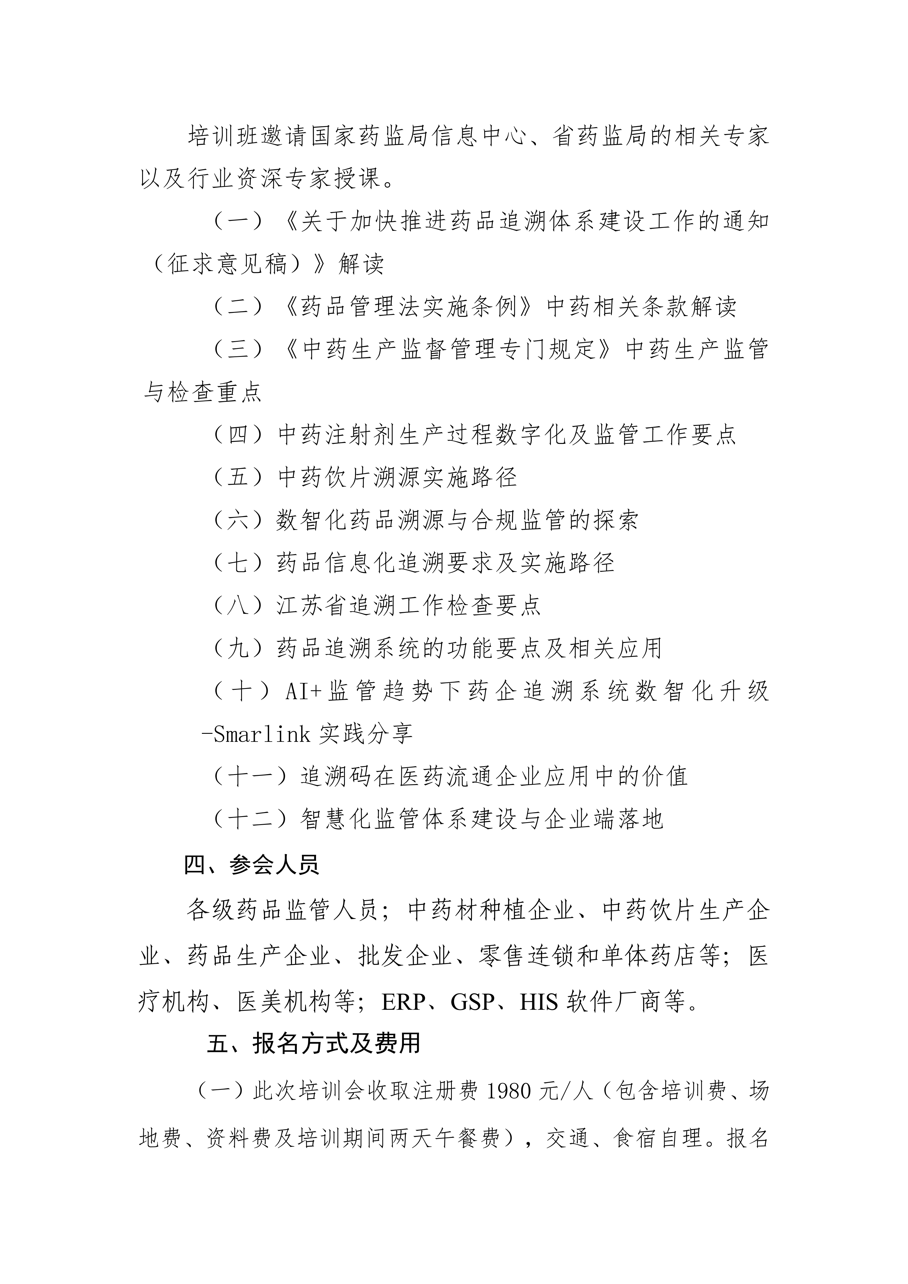 中药监管合规与药品追溯专题培训班通知