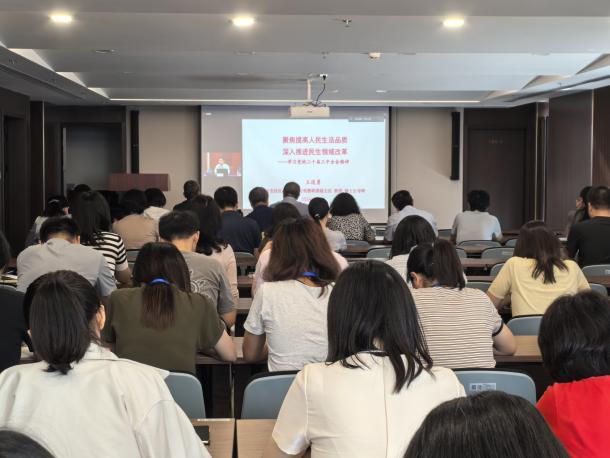 报告会邀请中共中央党校社会和生态文明教研部副主任王道勇教授做题为《聚焦提高人民生活品质 深入推进民生领域改革》的专题辅导报告。王道勇教授介绍了三中全会的主要精神和《决定》的主要框架,着重从新时代民生领域的伟大变革、改革要聚焦提高人民生活品质、保障和改善民生制度的改革重心三个方面就新时代民生领域改革的方向、目标和重点任务做了全面系统、生动详实的讲解,同时,针对民生领域的医药卫生体制改革做了分析和阐释。通过王教授的辅导报告,与会者深刻领会了三中全会对健全保障和改善民生制度体系做出的一系列新的重大部署,进一步增强了对加强民生建设和社会建设增进民生福祉重大意义的认识。